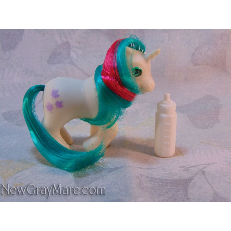 This smaller version of the pony baby bottle came with the newborn twins. Baby Gusty is for size comparison only and is not included.